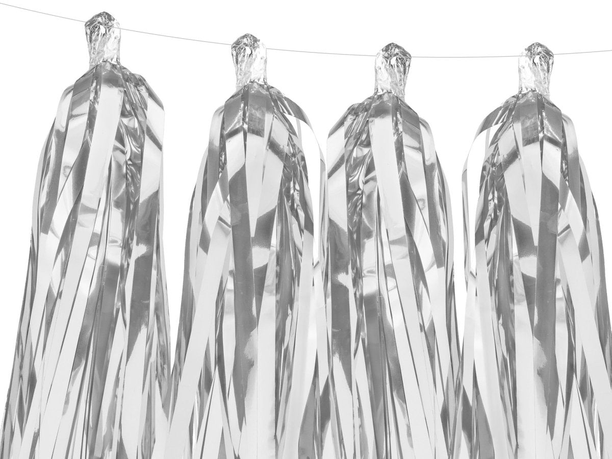 Verpackungsinhalt: Quastengirlande Silber 2m