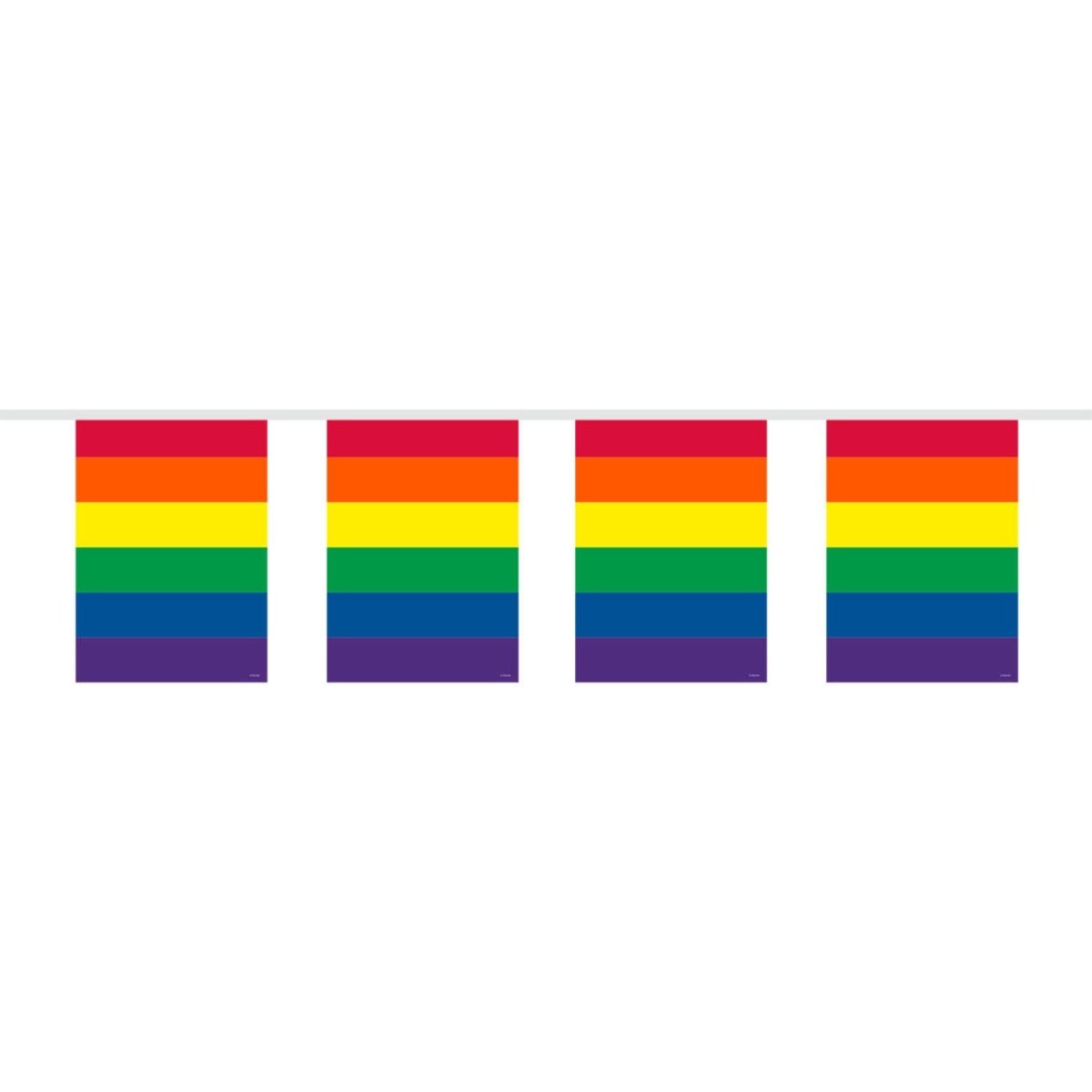Rainbow Flagline Square - 10 Meter. Inhalt: 1 Fahnenleine. Farbe: Mehrfarbig. Kann zum Beispiel bei folgenden Anlässen verwendet werden: Gay Pride, Kinderfest. Diese Girlande ist 10 Meter lang. Der Artikel ist aus Kunststoff hergestellt.