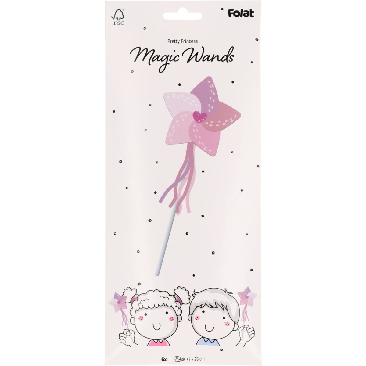Schöne rosa Zauberstäbe. Magic Wands - Pretty Princess - 6 Stück. Inhalt: 6 Papierzauberstäbe. Kann zum Beispiel für folgende Anlässe verwendet werden: Kinderparty, Geburtstag, Mottoparty. Diese zauberhaften Zauberstäbe haben einen 7 x 7 cm großen rosa Stern mit einer festlichen Quaste aus Papier an einem Plastikstab. Der Zauberstab ist insgesamt etwa 26 cm lang. Dieser Artikel ist aus Papier gefertigt.