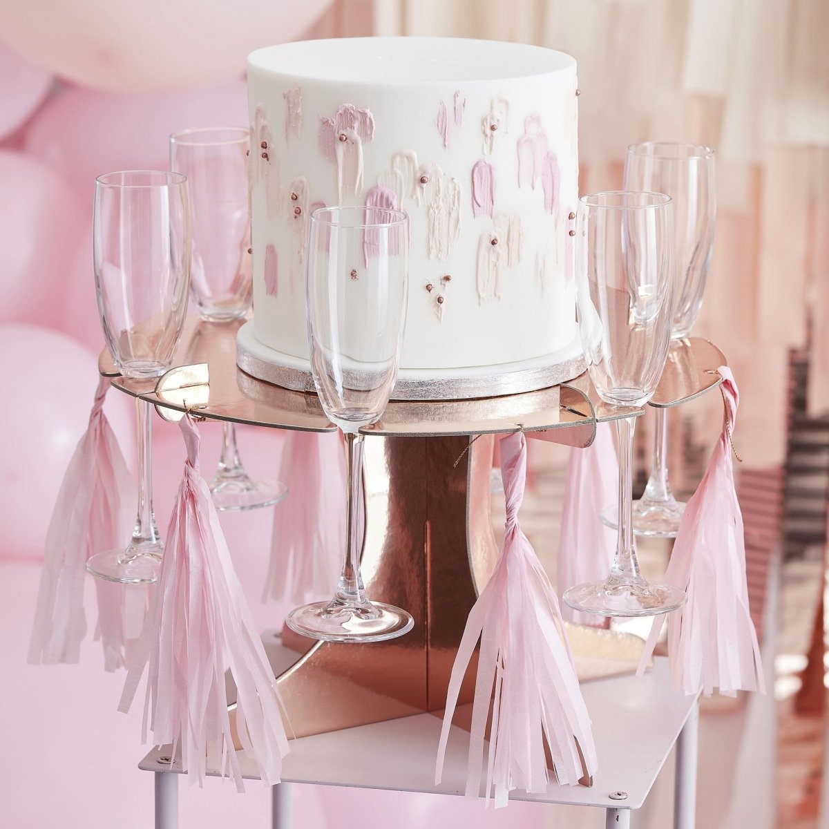 Rosengoldener Tortenständer mit Fransen