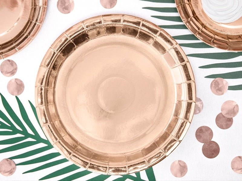 Beschreibung Bewertungen Über dieses Produkt Verpackungsinhalt:Rose Gold Plates 23cm 6pcsAnzahl: 6 StückDurchmesser: 23cmFarbe: Rose GoldMaterial: Karton Trustpilot