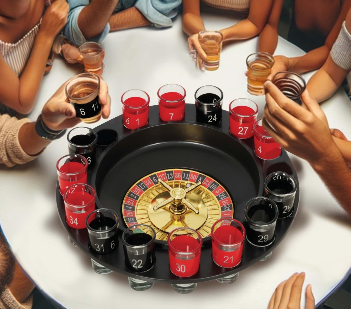 Packungsinhalt: 16 Stück Gläser und Roulette