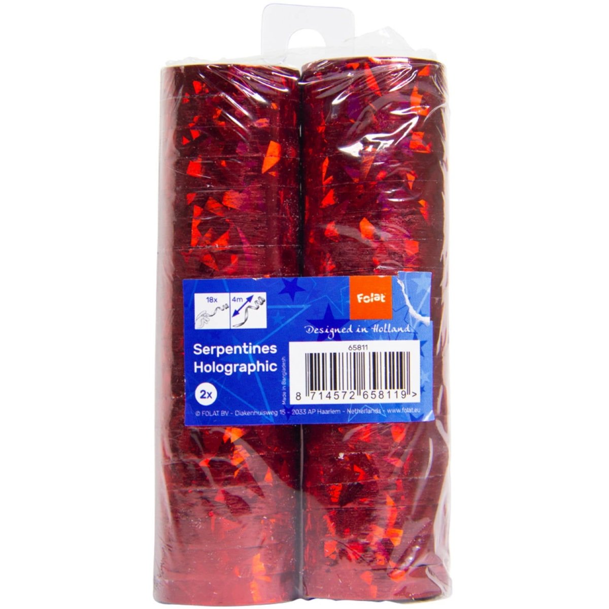 Rote holografische Serpentinen 4m - 2 Stück. Eine Packung enthält 2 Rollen mit 4 Meter langen Serpentinen. Sie können zum Beispiel für folgende Anlässe verwendet werden: Geburtstag, Kinderfest. Die Serpentinen haben eine Gesamtlänge von 4 Metern. Der Artikel ist aus Folie hergestellt.