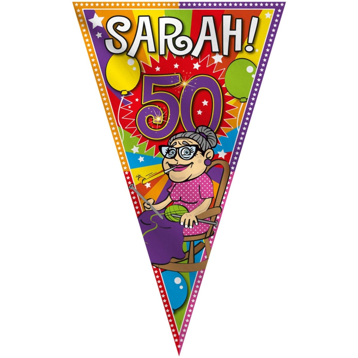 50 Years Sarah Party Mega Flag 100x150. Inhalt: 1 Flagge. Farbe: Mehrfarbig. Kann zum Beispiel bei folgenden Anlässen verwendet werden: Mottoparty, Geburtstag. Maße des Artikels: 100x150cm. Dieser Artikel ist aus Polyester hergestellt.