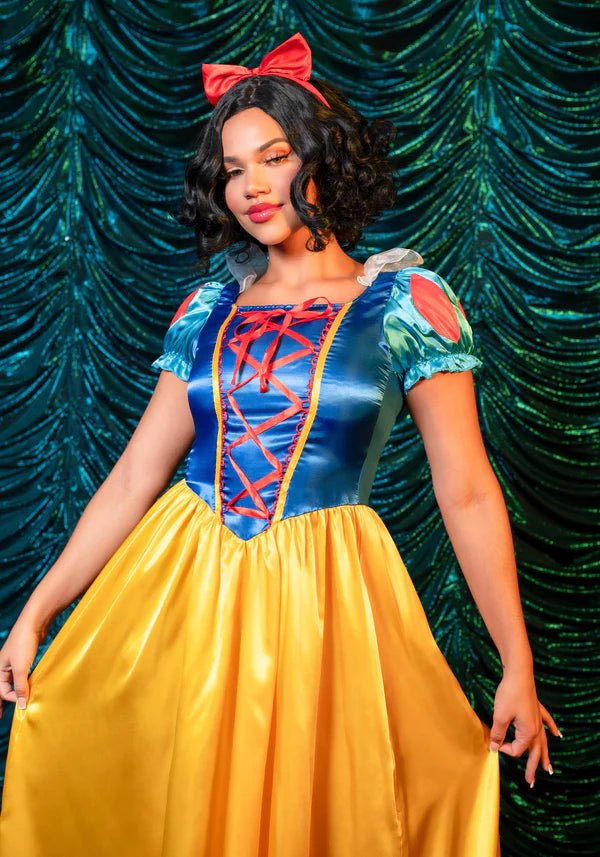 Sei die schönste Prinzessin des Waldes in dem zweiteiligen Schneewittchen-Kostüm von Leg Avenue! Das Kostüm besteht aus einem langen Kleid mit niedlichem Schleifendetail, Puffärmeln und einem Stehkragen sowie einem passenden Haarreif mit Schleife. Perfekt für Halloween, märchenhafte Mottopartys oder ein kultiges Kostüm für einen Prinzessinnen-Look! 👑🌲