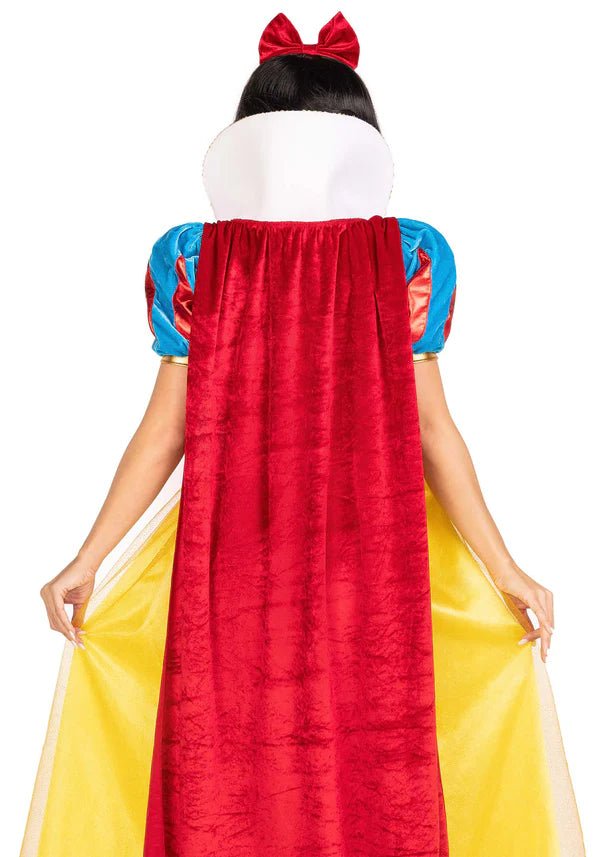 Erlebe die Magie der Märchen mit diesem bezaubernden 3-teiligen Deluxe Schneewittchen Kostüm! Dieses elegante Ensemble besteht aus einem klassischen Ballkleid aus Samt und Satin, das mit geflochtenen Goldpaspeln und einem majestätischen Stehkragen verziert ist. Der abnehmbare Samtumhang sorgt für einen königlichen Touch, während das niedliche Schleifenstirnband deinen Prinzessinnen-Look abrundet. Perfekt für Kostümpartys, Märchenthemen oder zum Nacherleben deiner Lieblingsgeschichte! 🌟💖