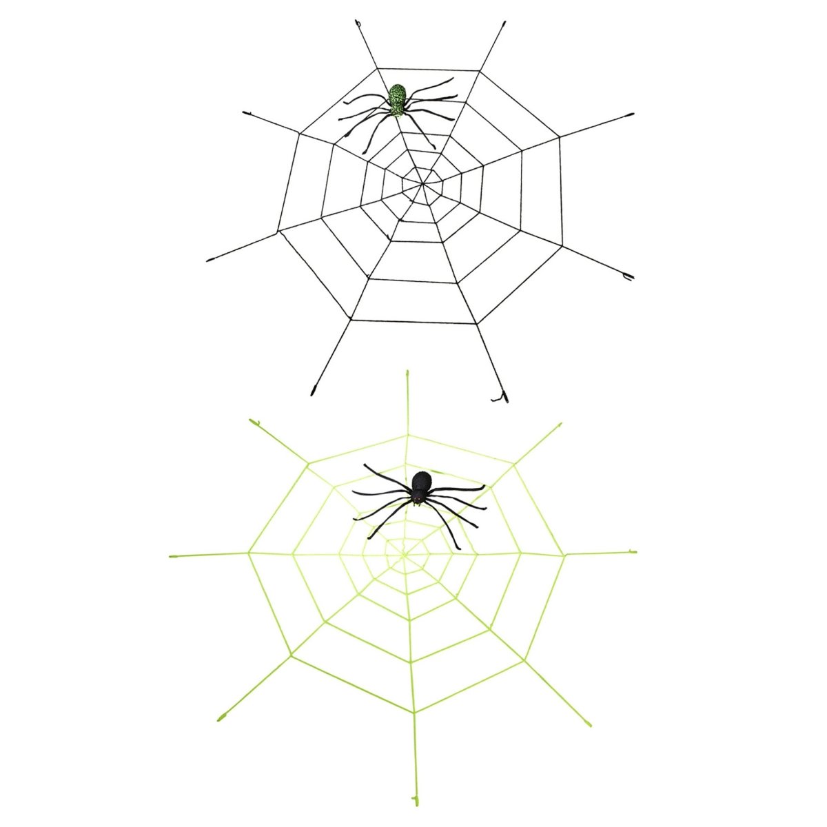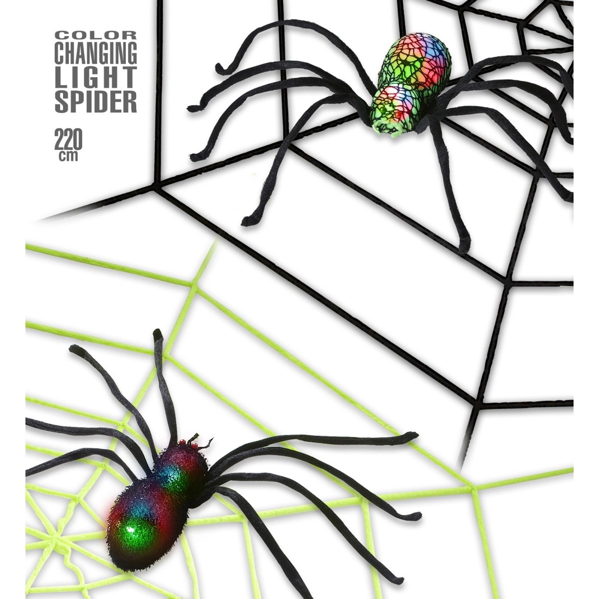 Schaffe eine gruselige Atmosphäre mit diesem schwarzen Spinnennetz inklusive Spinne, perfekt für Halloween oder Mottopartys. Das Netz ist 220 cm lang und verfügt über Neonlichter, die die Farbe wechseln und dir einen besonders gruseligen Effekt verleihen.