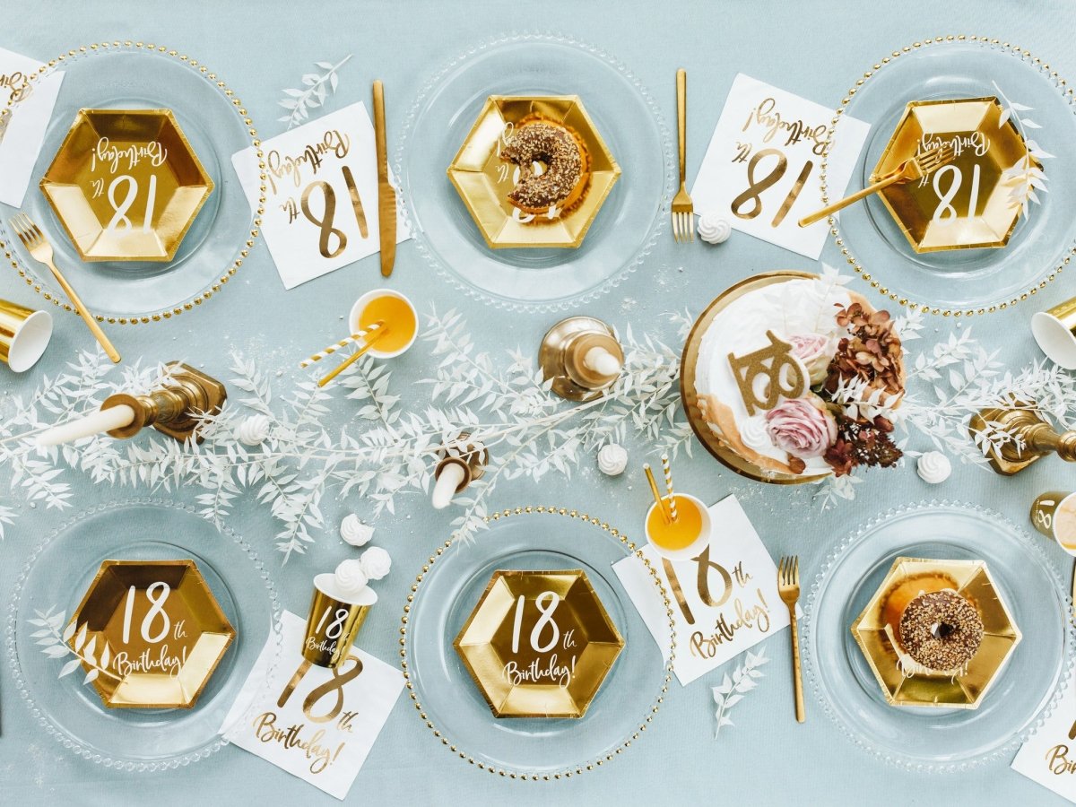 Inhalt: Papierservietten 18. Geburtstag, weiß mit goldener Aufschrift, Größe nach dem Entfalten ca. 33 x 33cm, Größe nach dem Zusammenlegen ca. 16,5 x 16,5cm.