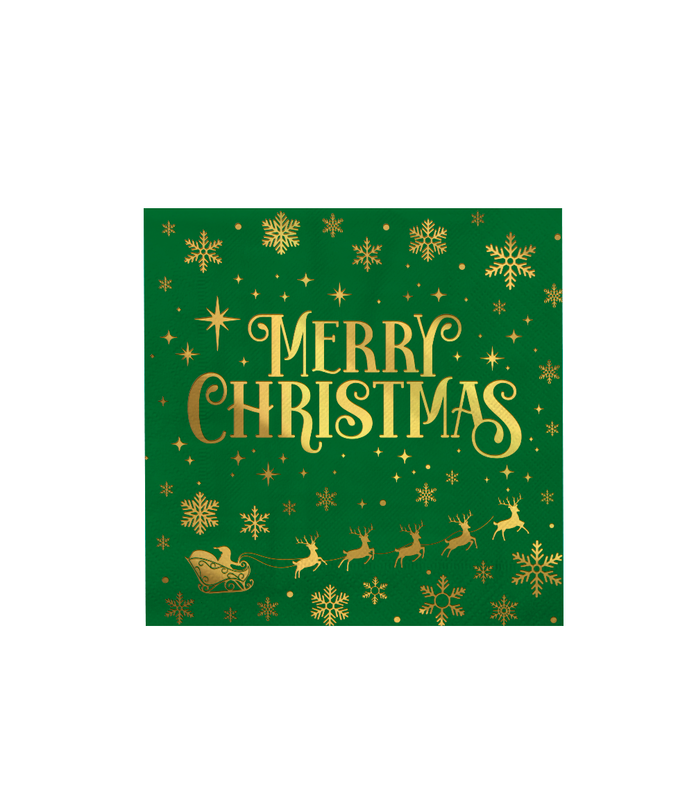 Vervollständige deinen Weihnachtstisch mit diesen grünen Servietten mit goldenen Merry Christmas Details. Die festlichen Farben und stilvollen Motive sorgen sofort für einen warmen und gemütlichen Look während der Feiertage.