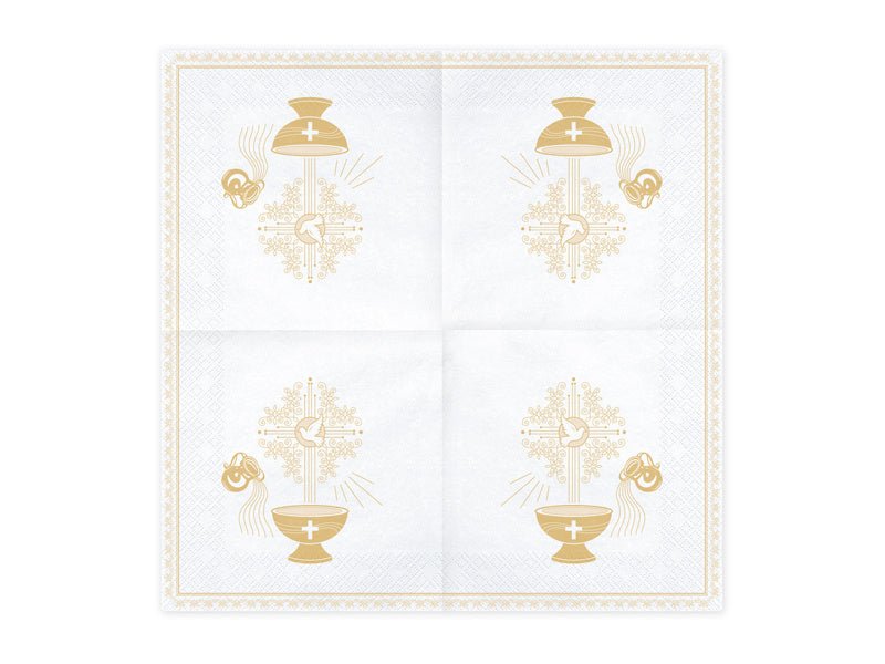 Beschreibung Bewertungen Über dieses Produkt Papierservietten Heilige Taufe, weiß mit goldenem und rosafarbenem Aufdruck, Größe nach dem Entfalten ca. 33 x 33 cm, Größe nach dem Zusammenfügen ca. 16,5 x 16,5 cm. Trustpilot