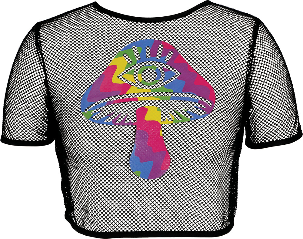 Dieses schwarze Shrooms Mesh-T-Shirt ist ein echter Hingucker für Partys, Festivals oder Themenabende. Der durchscheinende Mesh-Stoff sorgt für einen modernen und auffälligen Look, während sich das leichte Polyestermaterial auch bei längerem Tragen angenehm trägt. Ideal zum Kombinieren mit verschiedenen Outfits für einen zeitgemäßen Stil.