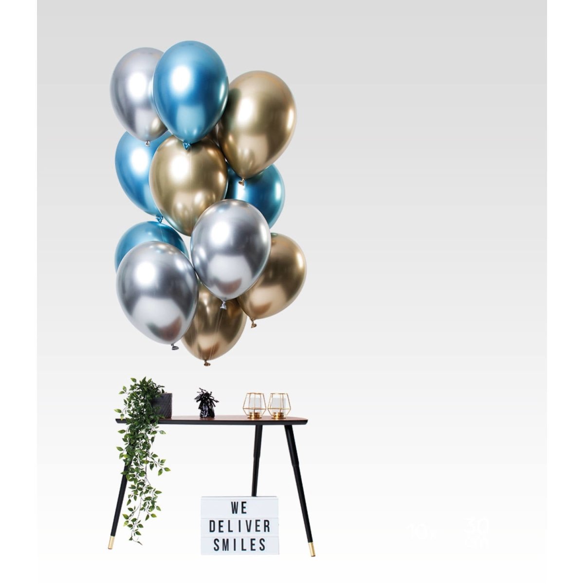 Silberne, blaue und anthrazitfarbene Ballons Mix Chrom 33cm 12 Stk