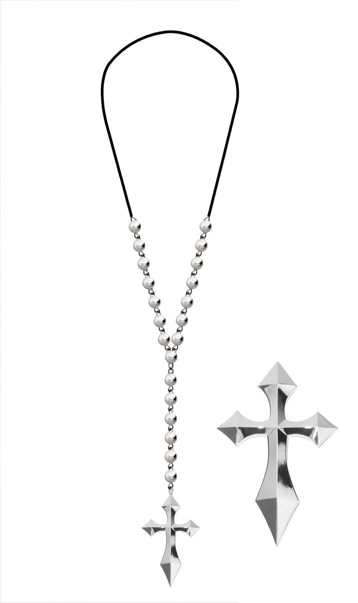 Silberne Halskette Kreuz mit Silberperlen