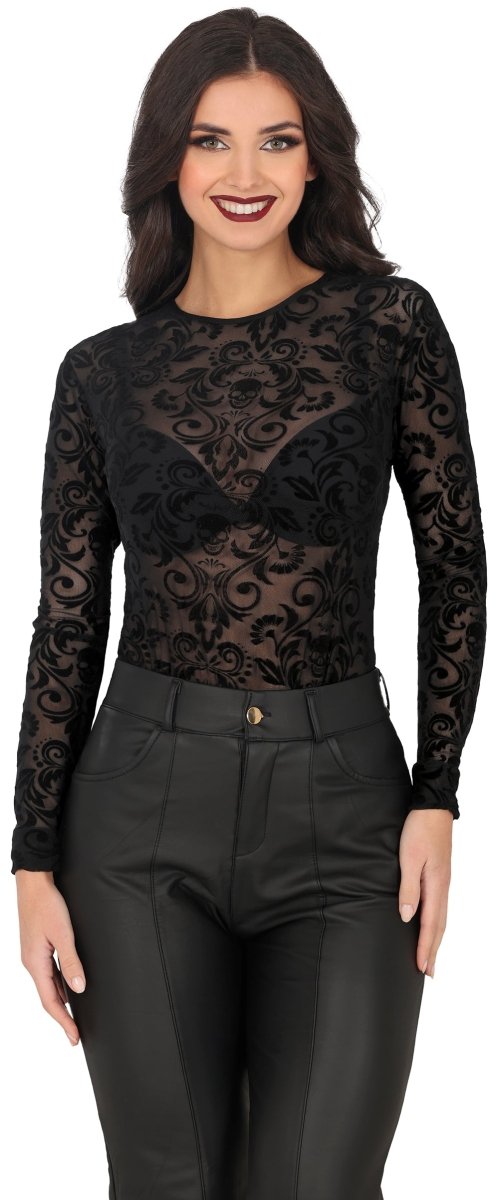 Verleihe deinem Outfit einen eleganten Touch mit diesem schwarzen Spitzenhemd. Durch sein stilvolles Design eignet es sich sowohl für legere als auch für festliche Anlässe. Hergestellt aus bequemem Polyester für ein weiches und angenehmes Tragegefühl.