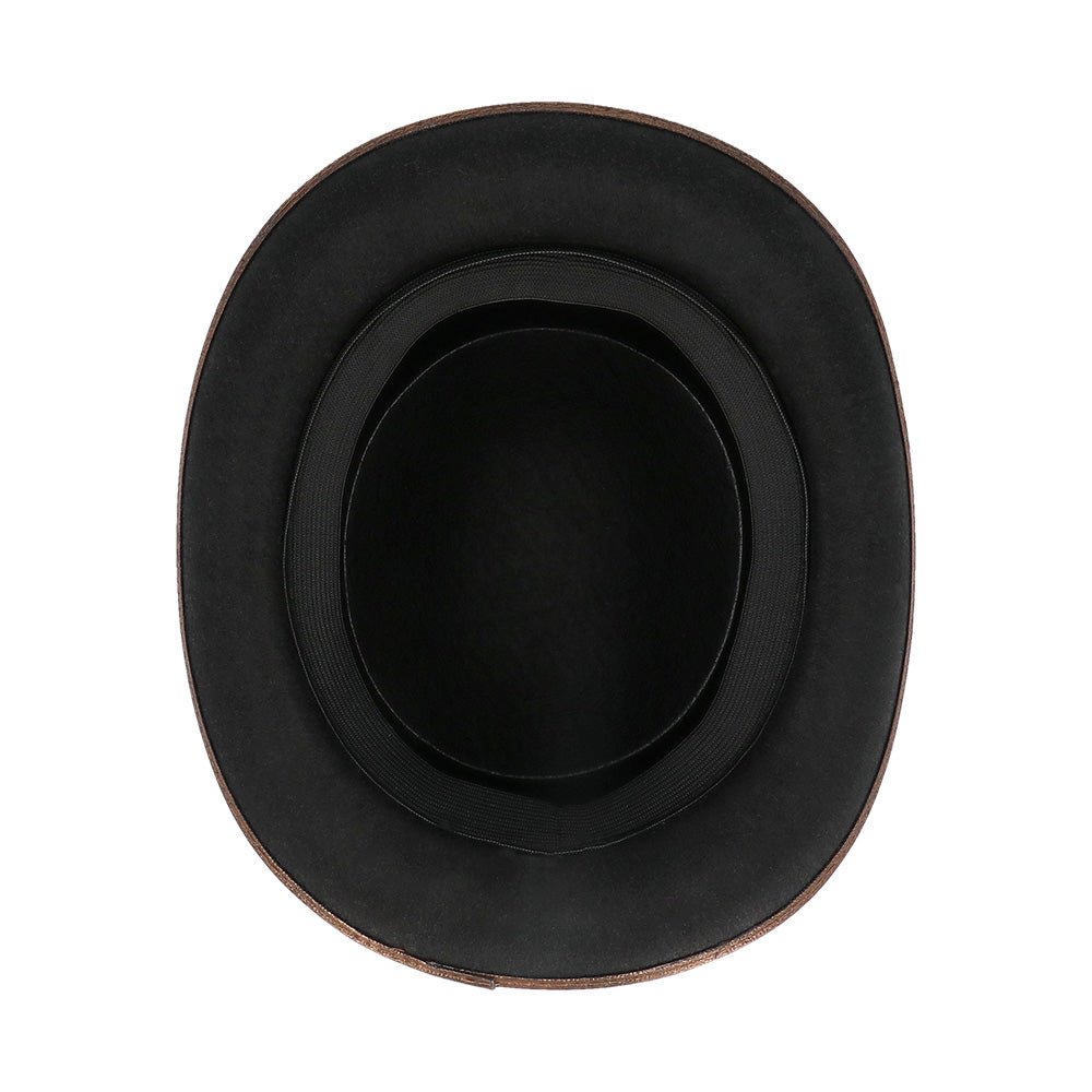Typ: großer Steampunk-Hut mit bronzefarbenen Details in Lederoptik und Nieten