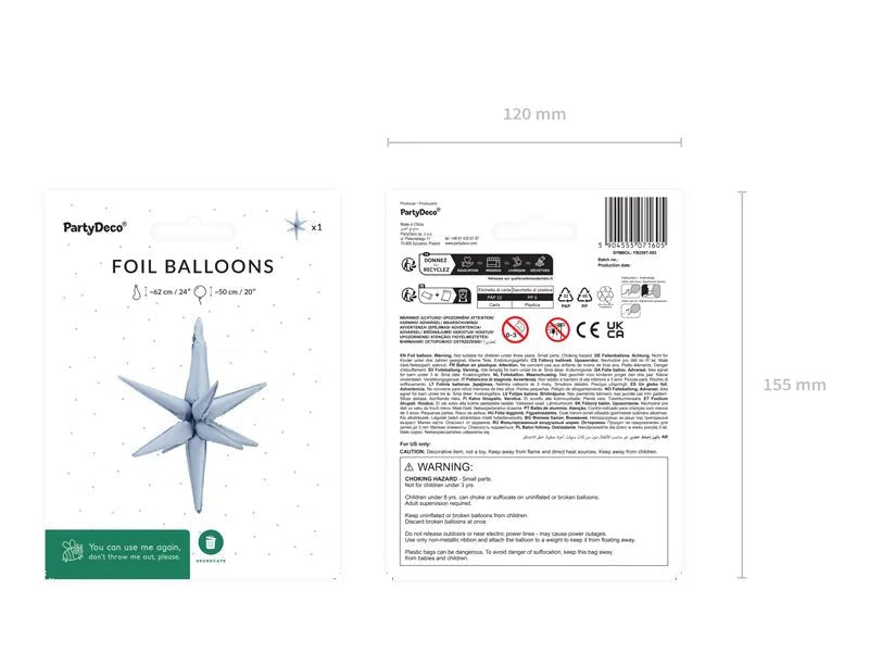 Beschreibung Bewertungen Über dieses Produkt Folienballon gefrosteter 3D-Stern in nebligem Blau, Maße vor dem Aufblasen ca. 53 x 62 cm (21 x 24''), Maße nach dem Aufblasen ca. 50 cm (20''). Mit Luft aufblasen. Das Set enthält einen Strohhalm. Trustpilot