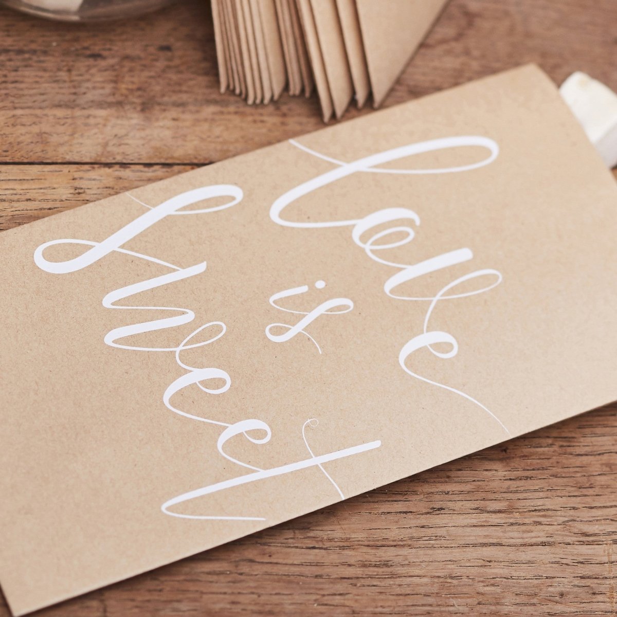 Mit unseren Süßigkeitentüten für Hochzeitsdanksagungen aus rustikalem Kraftpapier gibst du deinem Empfang den perfekten Touch. Gäste jeden Alters werden es lieben, sie mit leckeren Süßigkeiten zu füllen - ein wahrer Genuss, um deine Gäste zu verwöhnen. Die weiße Schrift wird auf deinem Schatztisch umwerfend aussehen - einfach unwiderstehlich.