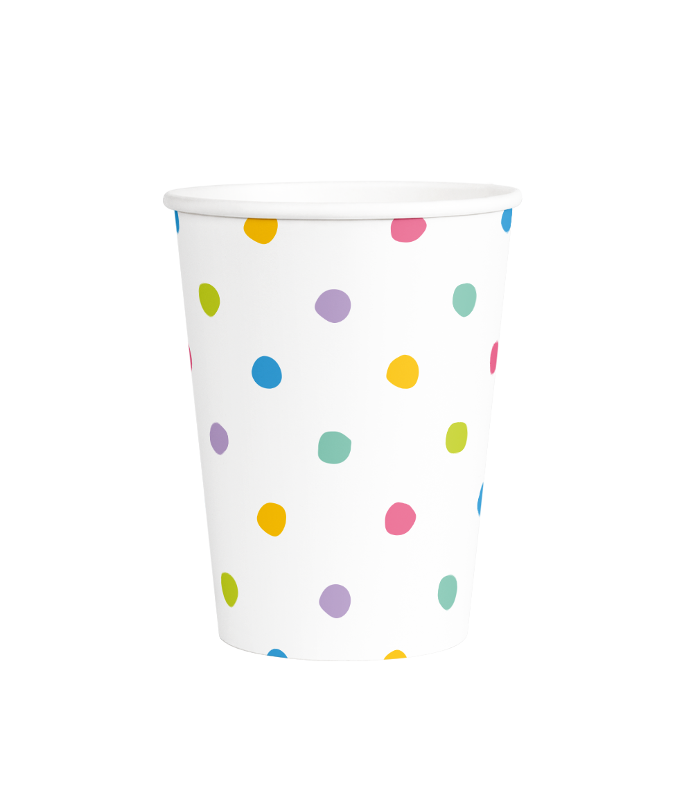 Die Becher - Party dots machen jeden Partytisch fröhlich und bunt! Perfekt für Limonade, Limonaden oder andere Partygetränke. Dank des frischen Punktedrucks sind sie sowohl für Kinderpartys als auch für gemütliche Geburtstage ideal.