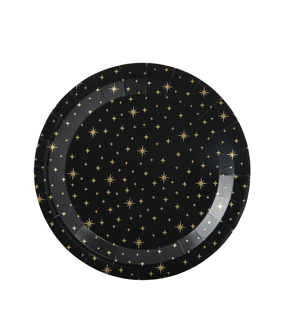 Teller Gold Sterne Schwarz 20cm 8Stk