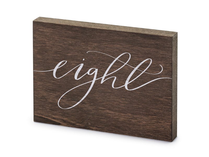 Beschreibung Bewertungen Über dieses Produkt Tischnummer aus Holz mit weißem Schriftzug "Eight", Größe ca. 2x18x12,5 cm Trustpilot