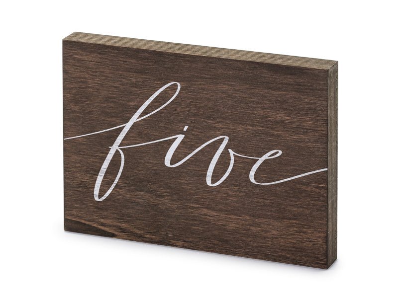 Beschreibung Bewertungen Über dieses Produkt Tischnummer aus Holz mit weißem Schriftzug ''Five'', Maße ca. 2x18x12,5 cm Trustpilot