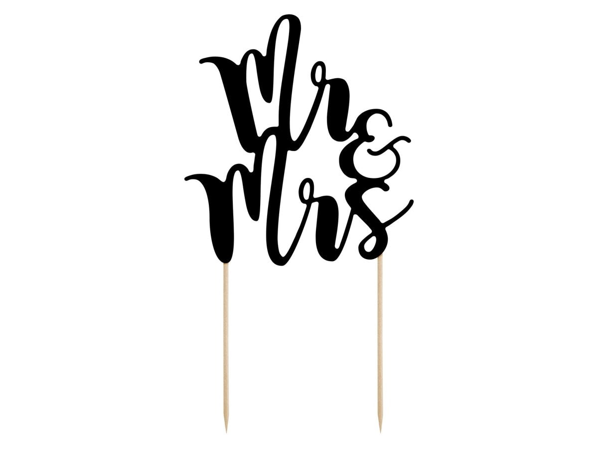 Inhalt: Tortenaufleger Mr & Mrs, schwarz, Länge ca. 25,5cm.