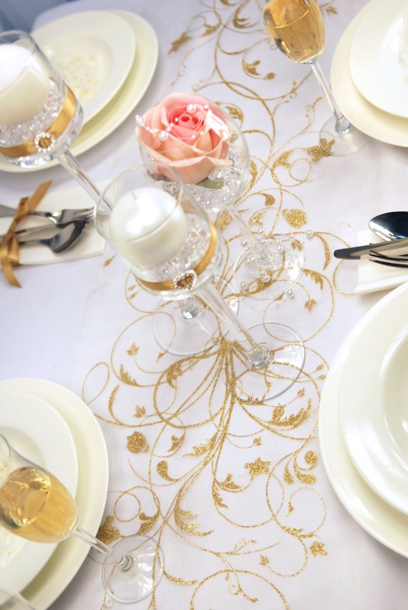Verpackungsinhalt:Vanille Creme Organza Stoff Gold Blumen 36cm 9m