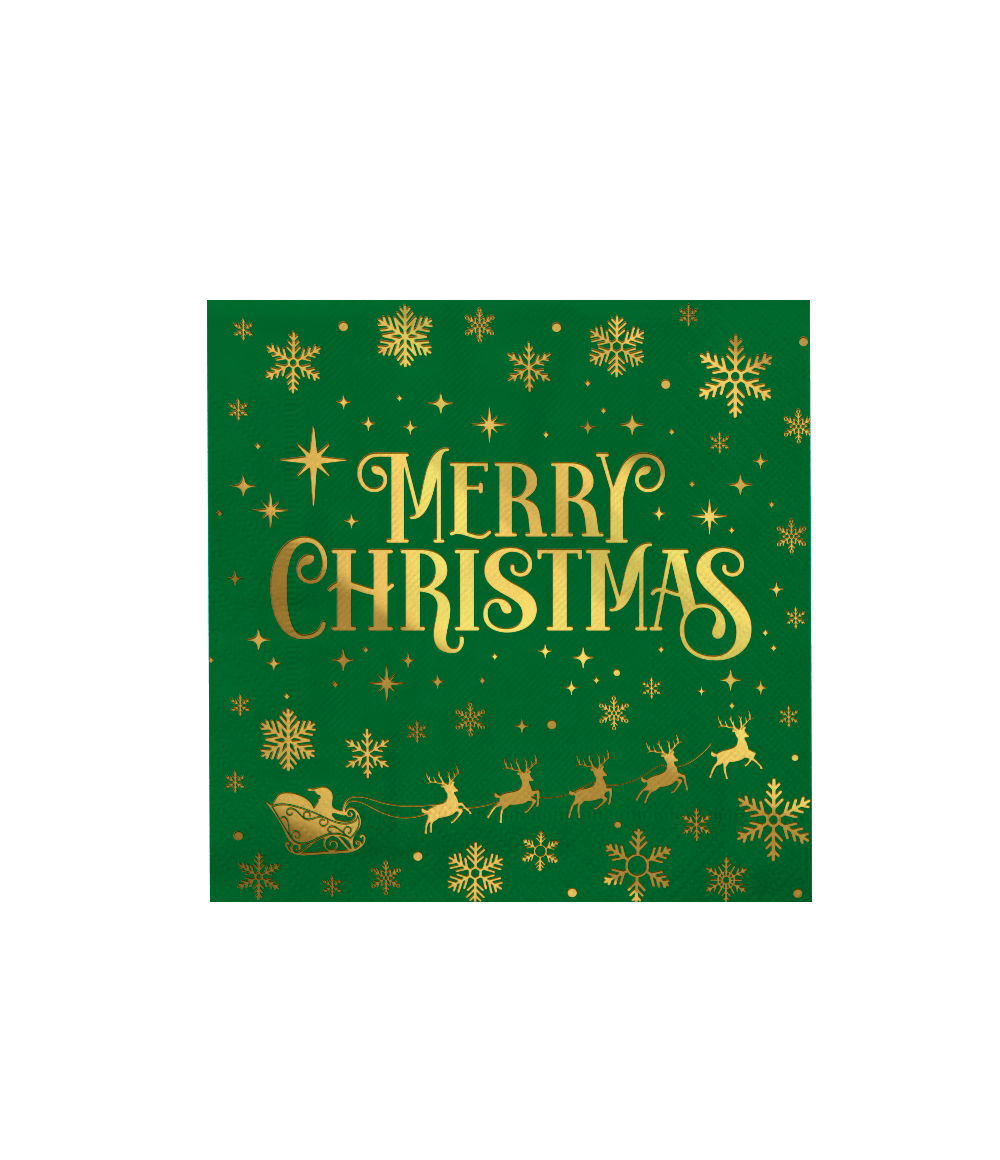 Vervollständige deinen Weihnachtstisch mit diesen grünen Servietten mit goldenen Merry Christmas Details. Die festlichen Farben und stilvollen Motive sorgen sofort für einen warmen und gemütlichen Look während der Feiertage.