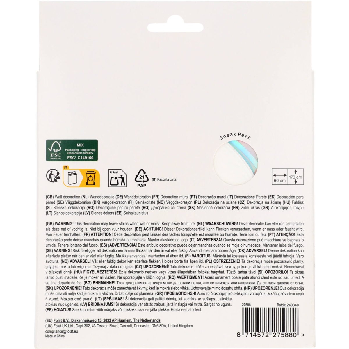 DIY Backdrop Magic. Party Backdrop - "Mystic Morning Dew" - Kreis - 80 x 170 cm. Inhalt: 8 Girlanden mit je 18 Kreisen. Zum Beispiel für die folgenden Anlässe zu verwenden: Geburtstag, Themenparty. Dieser Partyvorhang besteht aus 8 Girlanden mit je 18 Kreisen mit einem Durchmesser von 7,5 cm. Hänge sie genau so auf, wie du willst. Wenn du sie nebeneinander aufhängst, entsteht eine 170 x 80 cm große Kulisse. Es gibt 3 Farben für eine Girlande: weiß, grün, schillernd. Dieser Artikel ist aus Papier und Folie hergestellt.