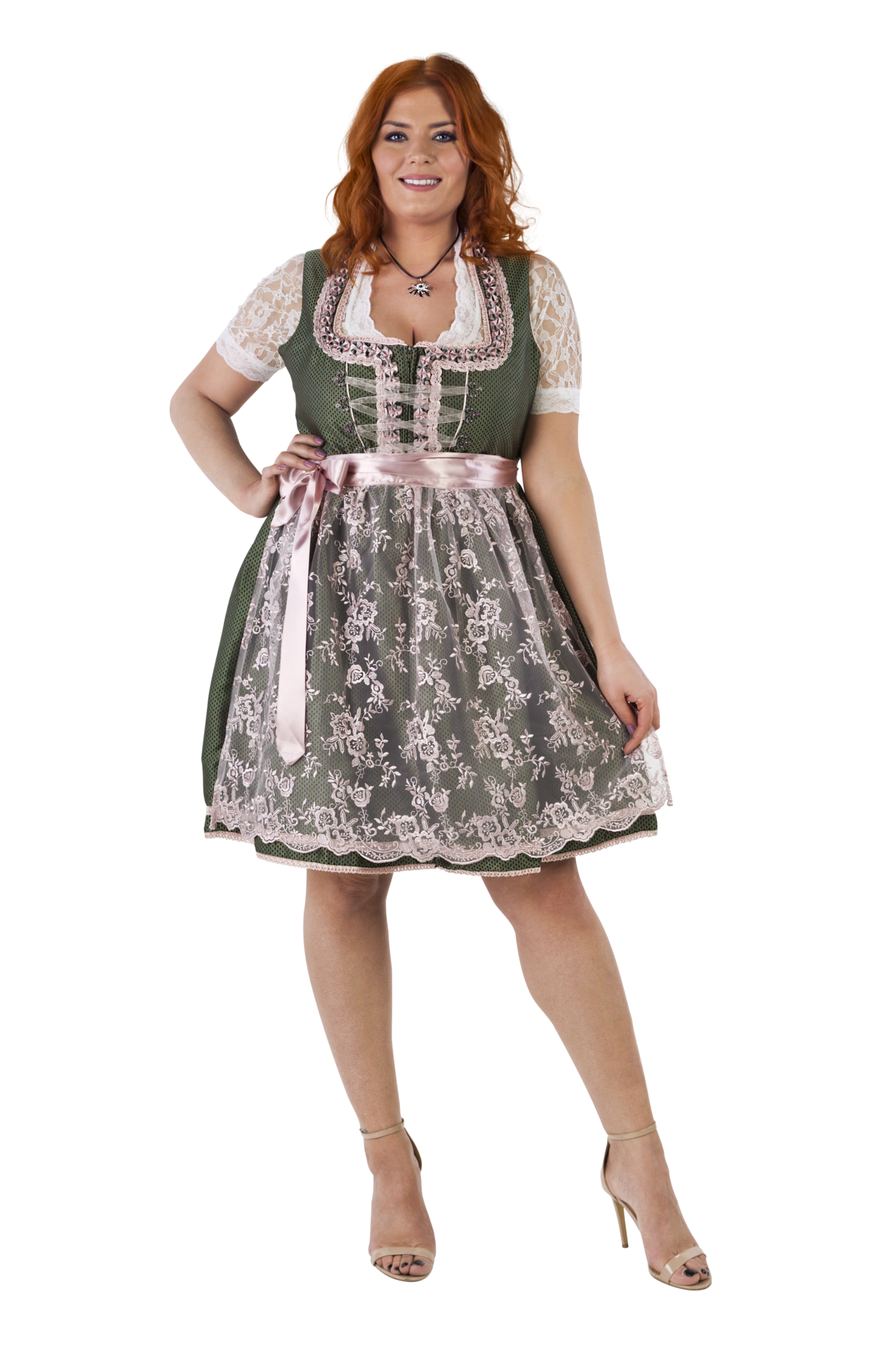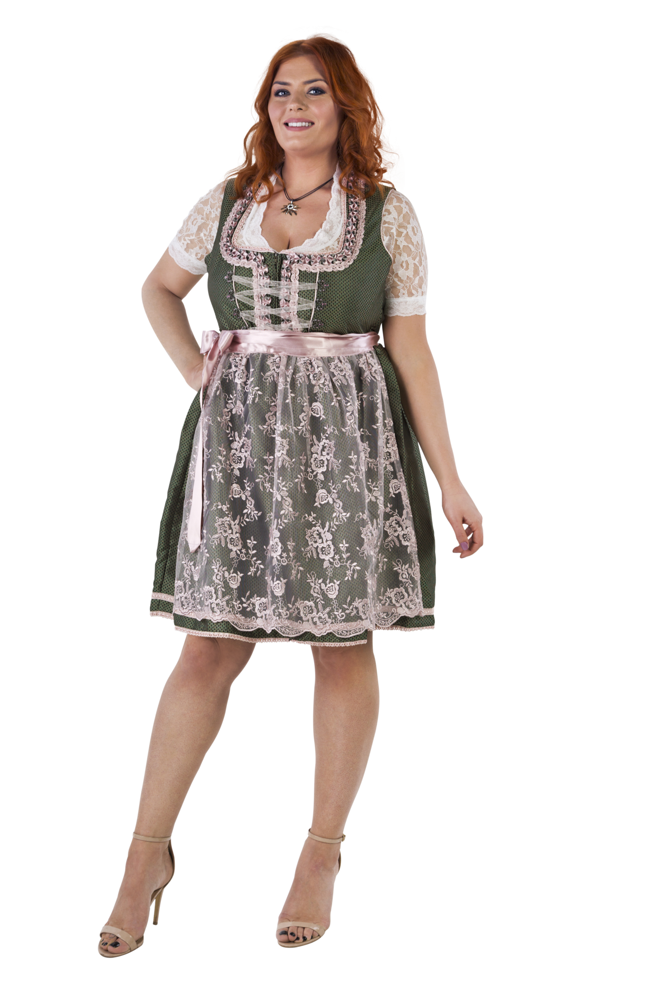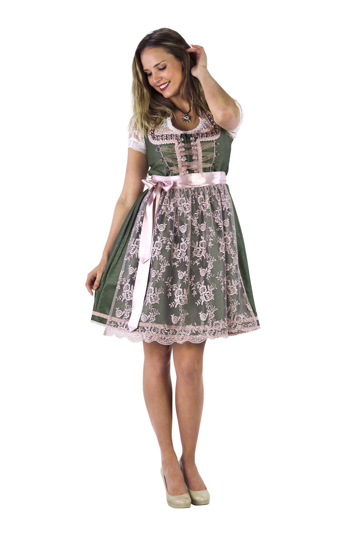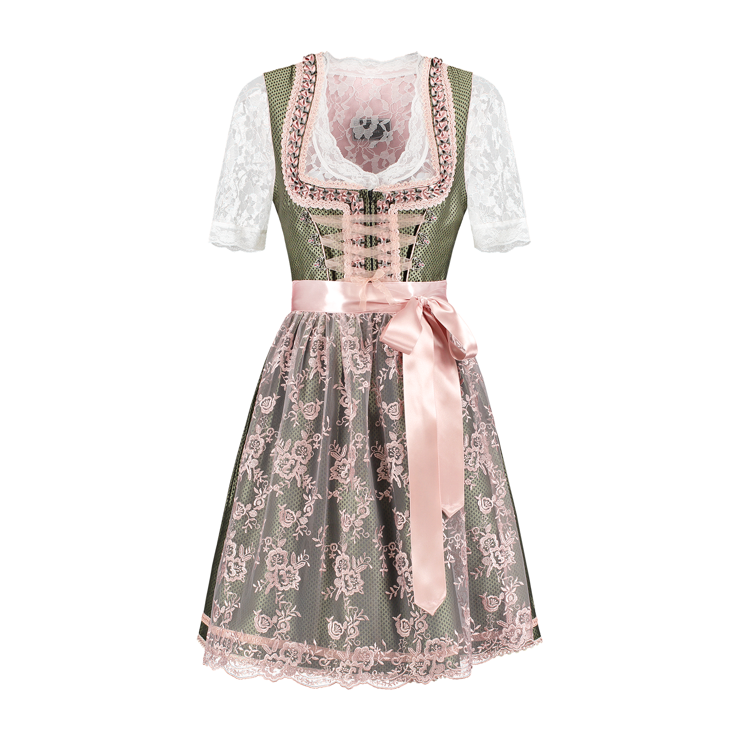 Weiß Grünes Dirndlkleid Oktoberfest Damen 2 Stück