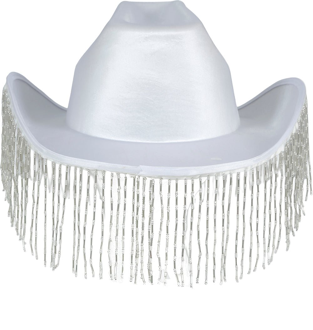 Verleihe deinem Outfit einen Hauch von Westernstil mit diesem weißen Cowboyhut mit Fransen. Die Kombination aus klassisch und verspielt macht ihn zum perfekten Accessoire für Partys, Festivals und Themenabende.
