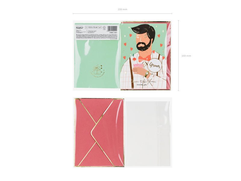 Beschreibung Bewertungen Über dieses Produkt Farbige Karte mit goldenem Metallic-Druck und Emaille-Anstecknadel mit der Aufschrift Bräutigam und Umschlag in Orange mit goldenem Metallic-Druck, Größe der Karte ca. 10,5 x 15 cm, Größe der Emaille-Anstecknadel ca. 3,5 x 3,5 cm. Trustpilot