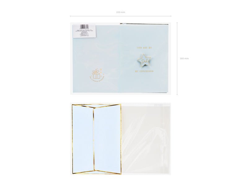 Beschreibung Bewertungen Über dieses Produkt Karte in Blau mit Goldmetallic-Druck mit geprägter Anstecknadel in Form eines Sterns mit Aufschrift Pa und blauem Umschlag mit Goldmetallic-Druck, Größe der Karte ca. 10,5 x 14,8 cm, Größe der geprägten Anstecknadel ca. 3 x 3 cm. Trustpilot