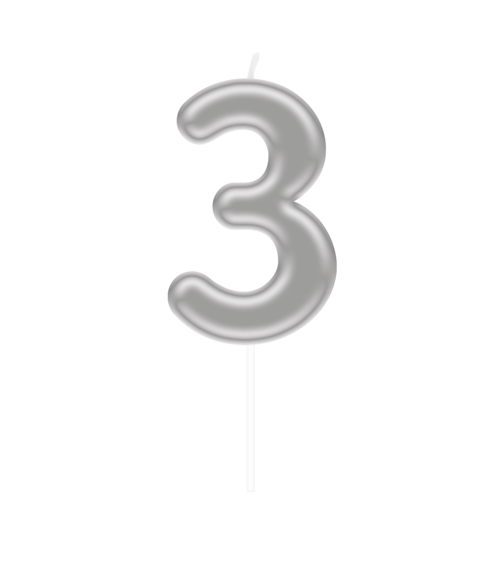 Zahlenkerze - 3 Silber